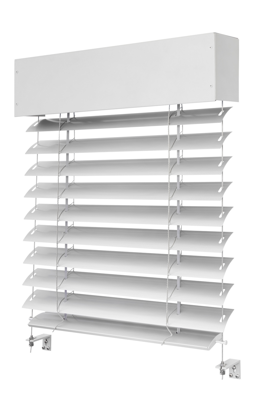 Az F80 kültéri zsaluziák C alakba hengerelt peremezetlen lamellákból készülnek. Lapos lamelláinak és kétoldali billenthetőségének köszönhetően felhúzott állapotban kevés helyet igényelnek, így közkedveltek családi házak és irodaépületek árnyékolásához egyaránt.